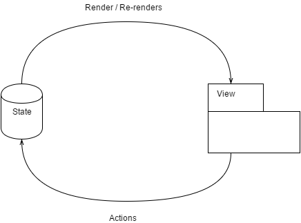 - The view of a component renders based on the state.